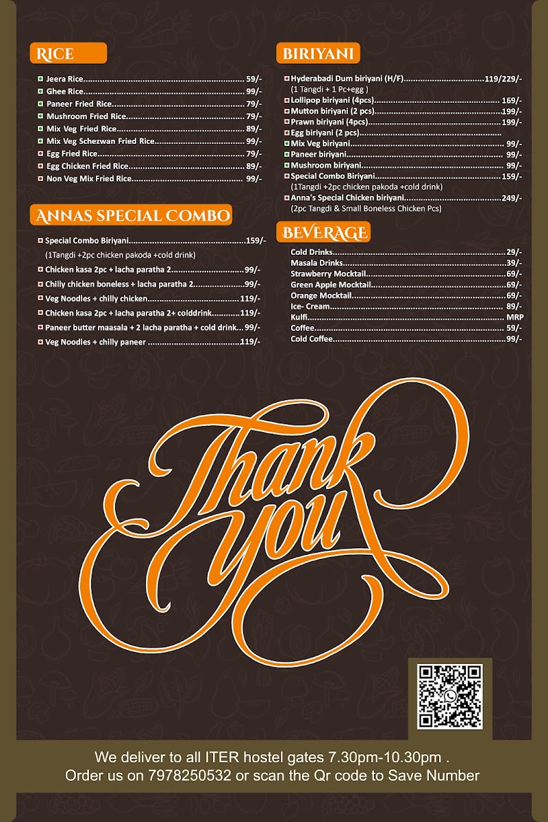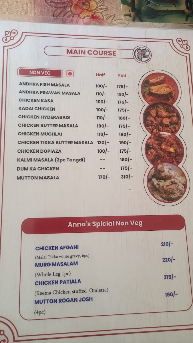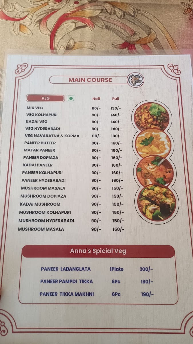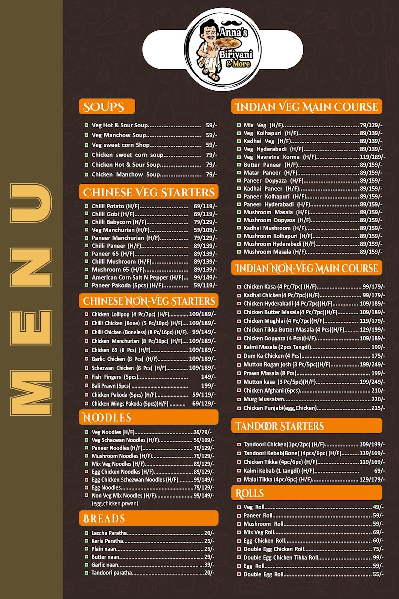 At Anna’s Biriyani & Restaurant, the menu offers a comforting blend of North Indian specialties and rich biryani varieties, ideal for casual meals with family or friends. The selection balances hearty main courses with flavorful, warming dishes that invite you to savor every bite in a relaxed, welcoming setting.